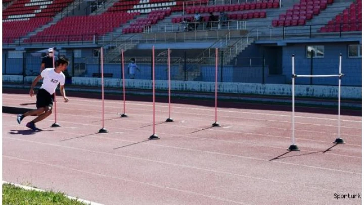 Antrenörlük eğitimi, beden eğitimi ve spor eğitimi ve spor yöneticiliği bölümlerinden birinde öğrenci olabilmek için Aksaray Üniversitesi (ASÜ) Spor Bilimleri Fakültesi'ne başvuruda bulunan adaylar, pandemi nedeniyle bu yıl salonda değil ASÜ Atletizm Stadyumu'nda hazırlanan test bataryasında sınava giriyor. Gerekli belge işlemlerini tamamlayan öğrenciler, maske ve sosyal mesafe kurallarına üst düzeyde riayet ederek belirli gruplar halinde sınav alanına alınıyor. Adaylar, toplam 42 metre uzunluğundaki ve beş aşamadan oluşan parkuru en hızlı sürede tamamlamaya çalışıyor. Parkura çıkan aday öğrenciler, önce her biri 48 santimetre çapında olan sekiz adet koordinasyon çemberinden geçiyor. Sonrasında ise sırasıyla 16 santimetre yüksekliğindeki ve beş metre uzunluğundaki denge tahtasından, çapraz yerleştirilen altı adet slalom çubuklarının arasından, 120 ve 50 santimetre yüksekliğindeki engellerin altından ve üstünden geçerek, 20 metrelik sprintle parkuru tamamlıyor. Sensor çubuklarının arasından geçtiği anda süresi başlayan adayın performansı, sprintin ardından bitiş çubuklarının arasından geçtiğinde tamamlanıyor ve ekrana yansıtılarak görevliler tarafından kaydediliyor.