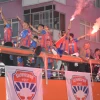 Mavi kırmızılılar dün akşamüstü açık bir otobüsle şehirde tur atarak Silivri Meydanı’nda coşkulu taraftarlarıyla buluştu. Futbolcuların, teknik heyetin ve yöneticilerin yer aldığı üstü açık otobüs taraftarların yoğun ilgisi nedeniyle meydana ancak 1 buçuk saatte geldi. Meşalelerin yandığı karnavalda karanlığı şampiyonluk kutlamaları aydınlattı. Silivri Meydanı’nda bekleyen binlerce taraftar şampiyon Silivrispor’la adeta kucaklaştı. Atatürk heykelinin önünde kurulan sahneye futbolcular, teknik heyet ve yöneticiler tek tek isimleri okunarak alkışlar arasında geldi. Coşkunun tavan yaptığı bu anlara taraftarlar da eşlik edince ortaya mükemmel görüntüler ortaya çıktı. Şampiyonluk kupasının havaya kalktığı anda taraftarlar bu anı ölümsüzleştirmek için cep telefonlarının kameralarını açarak hem fotoğraf çekti hem de canlı yayın yaptı kutlama alanından. Müthiş bir coşkuya sahne olan kutlamalar geç saatlere kadar devam etti.